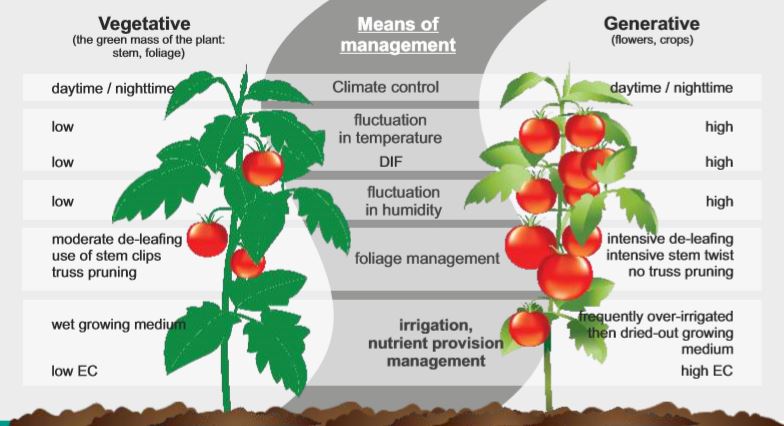 Για να μεγιστοποιήσουμε την απόδοση, θα πρέπει να γνωρίζουμε πώς να διατηρούμε την ισορροπία μεταξύ της βλαστικής και της παραγωγικής κατάστασης των φυτών. Έτσι, για την μεγαλύτερη δυνατή απόδοση της καλλιέργειας μας θα πρέπει τα φυτά να καταναλώνουν το μεγαλύτερο μέρος της ενέργειάς τους στη παραγωγή. Σε κάθε ακραία κατάσταση, είτε αυτό είναι το κλίμα, ή η μεταβολή της υγρασίας του εδάφους ή/και της περιεκτικότητας σε θρεπτικά συστατικά ή οποιοσδήποτε άλλος παράγοντας, μειώνεται η δυνητική απόδοση, καθώς τα φυτά πρέπει να "ξοδέψουν" ενέργεια για να αντισταθμίσουν τον ή τους αρνητικούς παράγοντες .